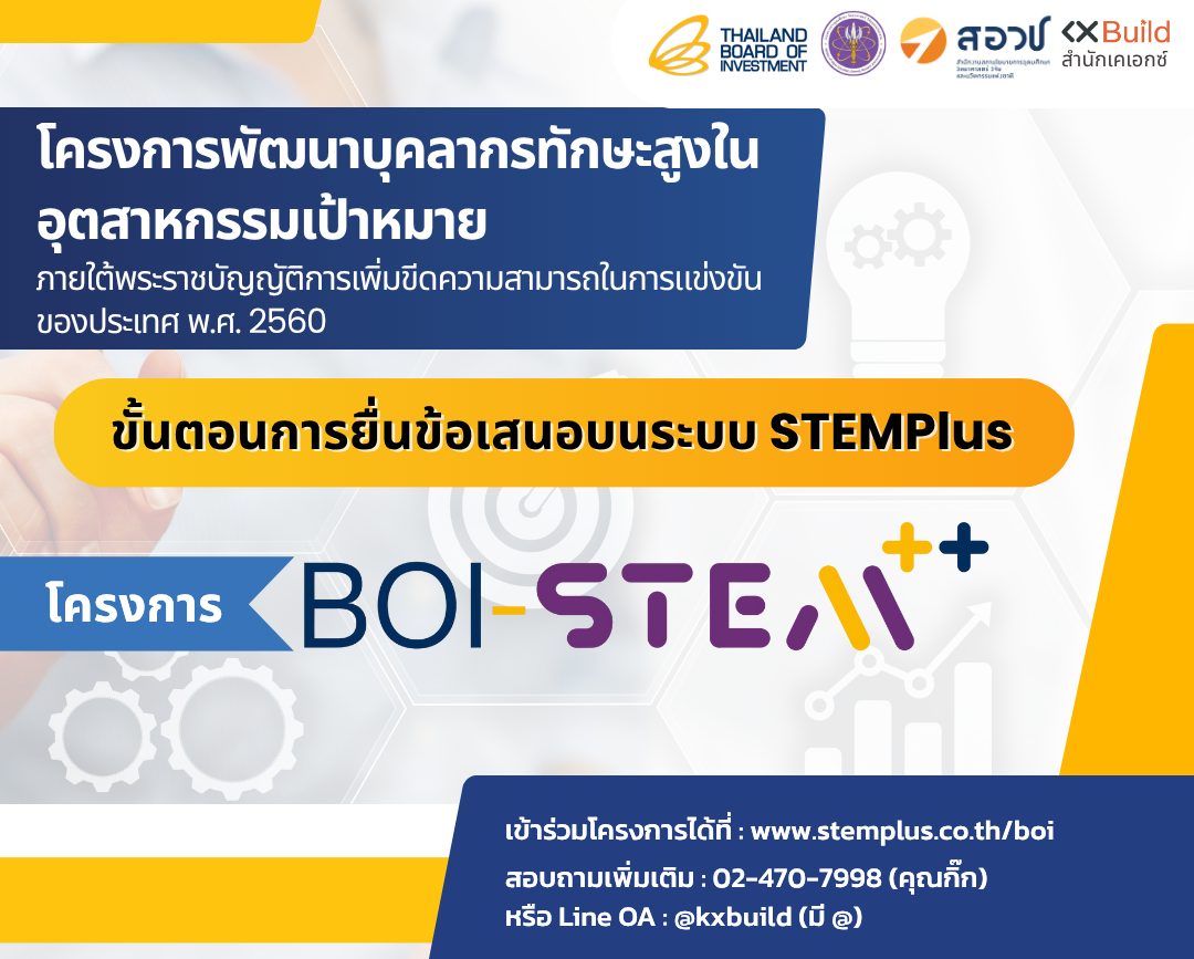 สำหรับผู้ประกอบการที่สนใจเข้าร่วมโครงการ BOI-STEM++ เพื่อขอรับการสนับสนุนค่าใช้จ่ายในการฝึกอบรมพัฒนาบุคลากร
