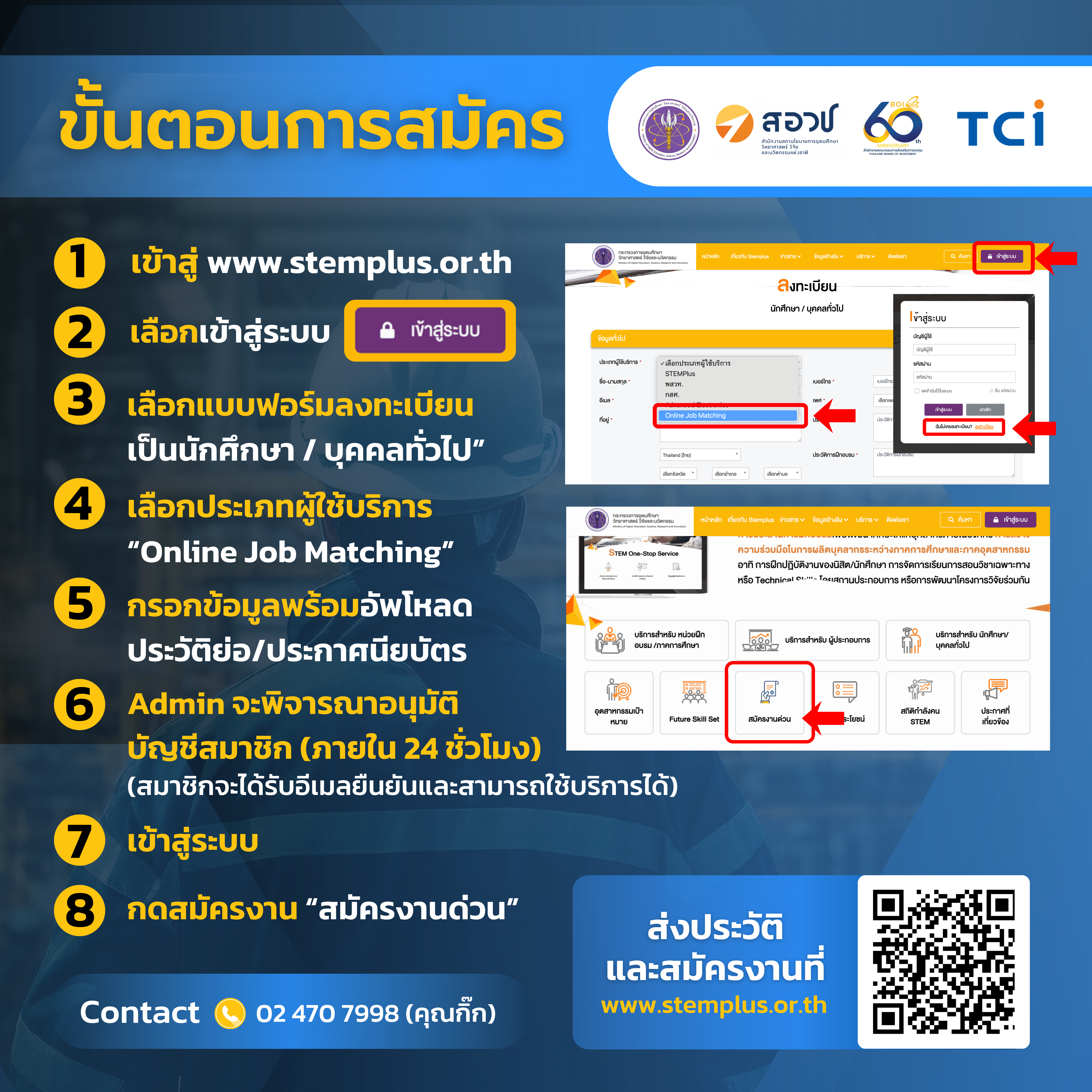 ผู้สนใจสามารถสมัครเข้าร่วมกิจกรรมและส่งประวัติได้ที่ www.stemplus.or.th